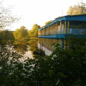 База отдыха находится в 12 километрах от Рогачева и всего в 100 метрах от санатория «Приднепровский». Здесь на живописном берегу реки Днепр в затоке стоит самый большой в Беларуси двухпалубный дебаркадер — «дом на воде».